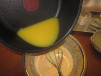 ボウルに入った生地をまた鍋に入れて、中火にかけたら、泡だて器で焦げないように混ぜ続けます |