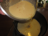 オレンジジュースを鍋にいれ、沸騰直前まで温めます。 温めたジュースを人参を入れたボウルに半分入れて、泡だて器でしっかり混ぜます。しっかり混ざったら、残りのジュースも全部入れて、さらに混ぜます |