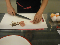 とり肉はひと口大に切り、しょうゆ小さじ1、料理酒小さじ1につけておく |
